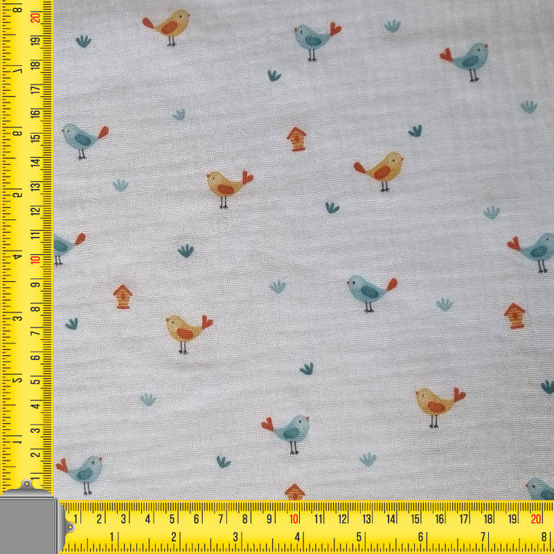 Compra al mejor precio Tela de Doble Gasa Bambula Blanca Pájaros