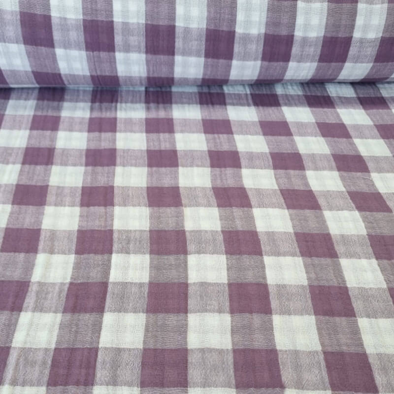 Por qué comprar Tela de Doble Gasa Bambula Vichy Berenjena Reversible por metros