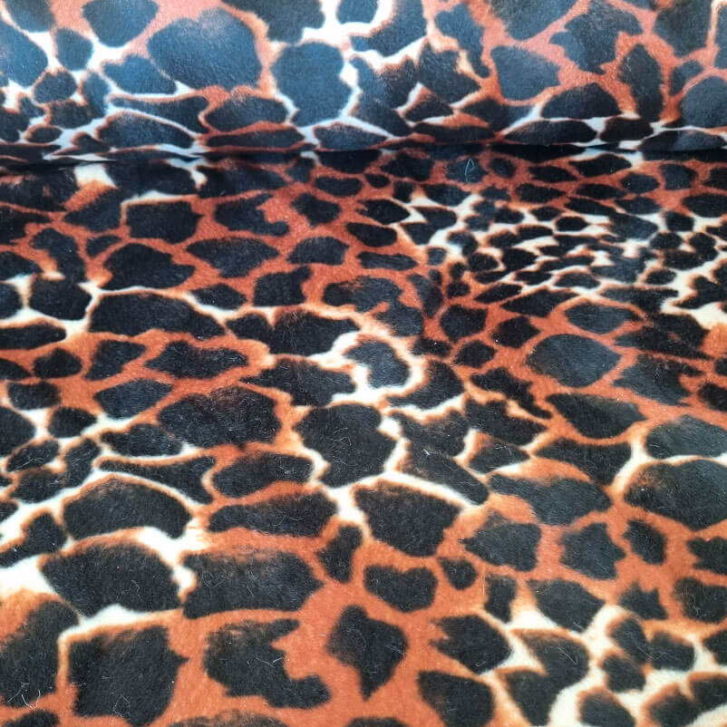 Embárcate en un viaje de estilo audaz y exótico con nuestra fascinante tela de jaguar. Este diseño vibrante presenta un fondo naranja y crudo, adornado con manchas negras que imitan la majestuosidad del pelaje de los jaguares. Fabricada meticulosamente en poliéster con un ancho de 1,50 metros, esta tela no solo es resistente sino también fácil de trabajar, convirtiéndola en la elección perfecta para una variedad de proyectos creativos.