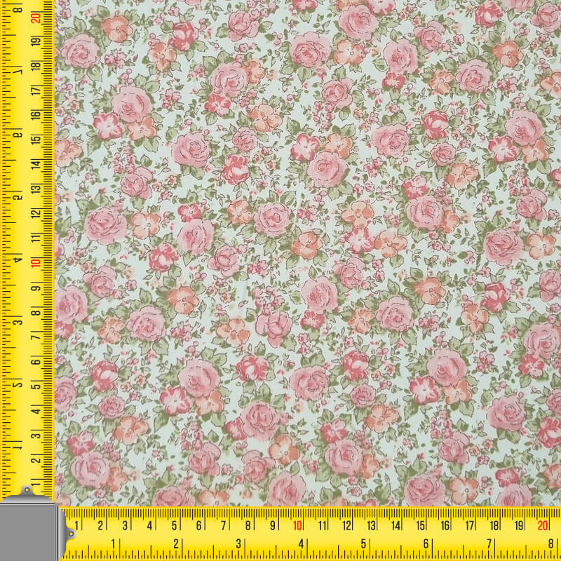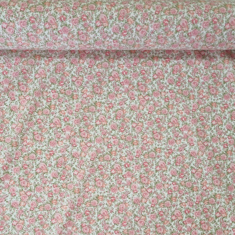 Tela de Popelín Blanca 100% Algodón Flores Rosas (ancho 1,50M)