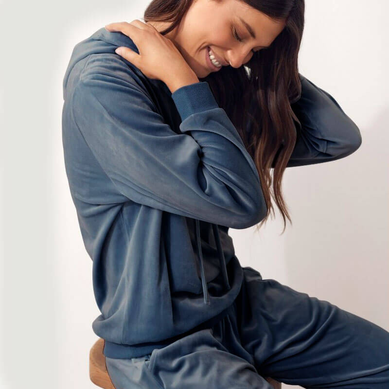 Con un peso de 280 gramos por metro cuadrado, este terciopelo se caracteriza por ser más grueso que el estándar, proporcionando calidez y suavidad en cada prenda. Su profundo tono azul noche añade elegancia y versatilidad, perfecto para ropa casual como sudaderas y chándales, así como para proyectos más formales que requieran un toque de distinción.
