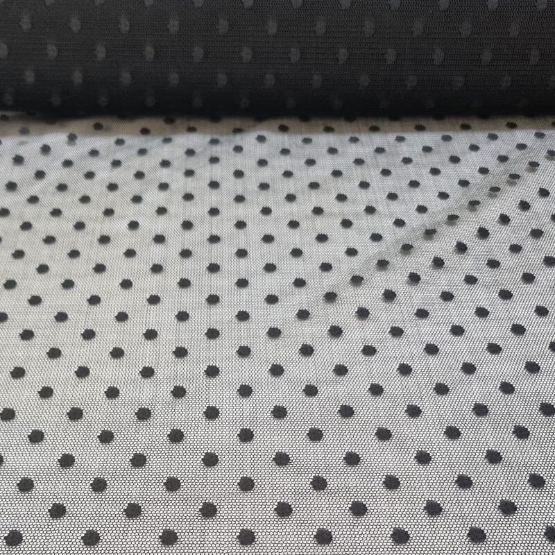 Sumérgete en la sofisticación eterna con nuestra exclusiva tela de tul con plumetis en un profundo y elegante tono negro. Confeccionada con esmero en un 100% de poliéster, esta tela se convierte en la elección perfecta para la creación de trajes de flamenca y otras prendas que buscan destacar por su estilo único y atemporal.