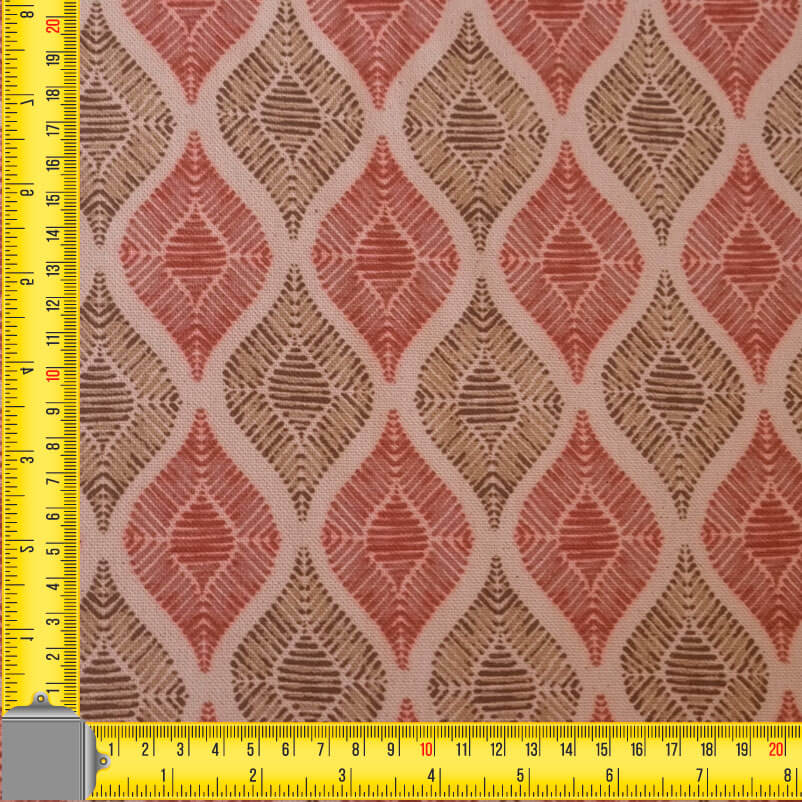 Compra al mejor precio Tela de Loneta Half Panamá 100% algodón dibujos Geométricos Frambuesa y Beige (ancho 2,80M)